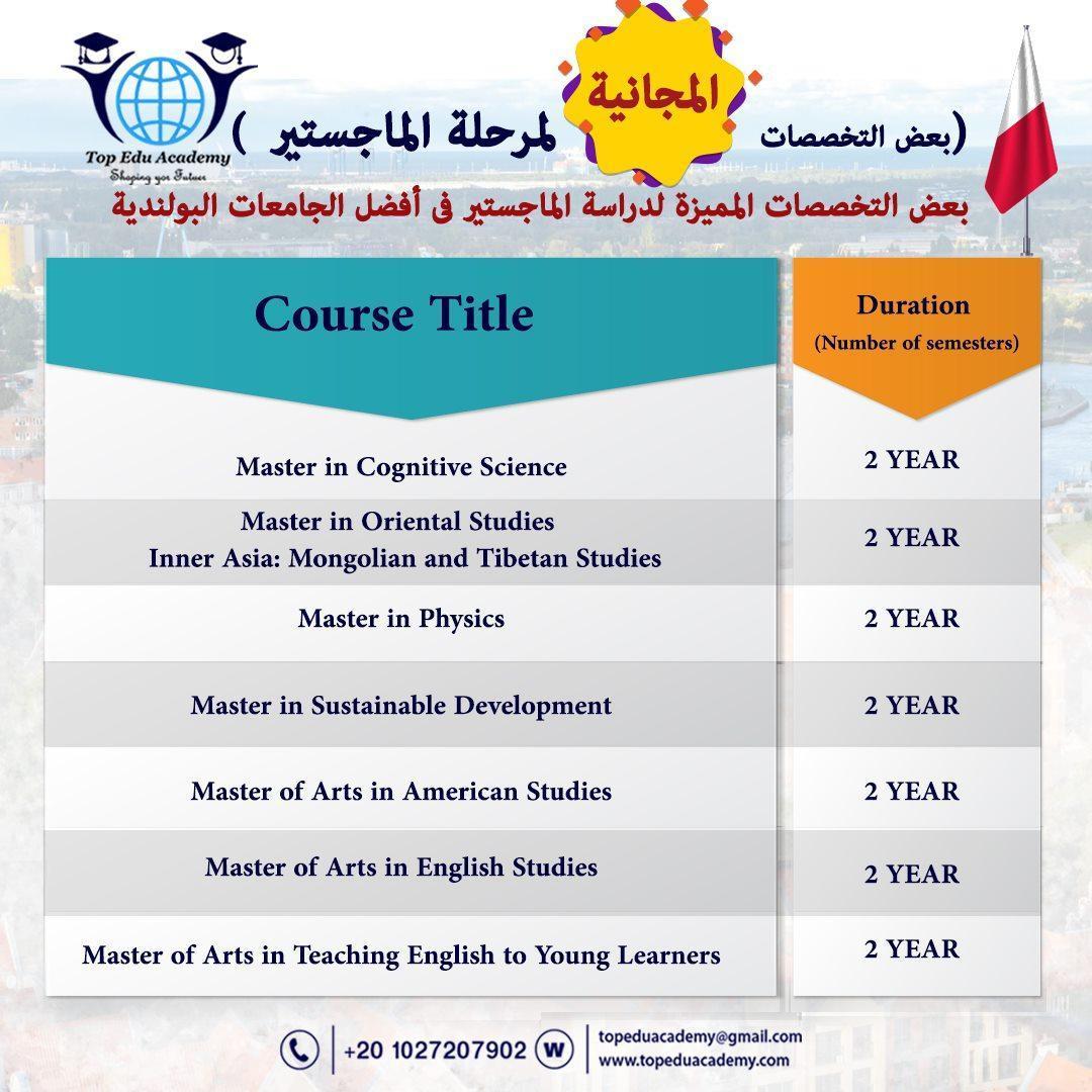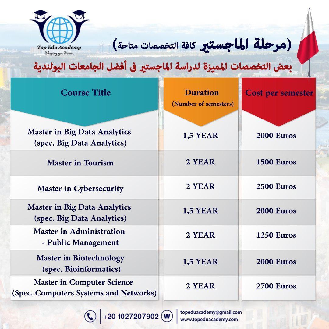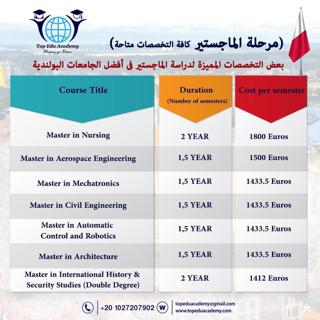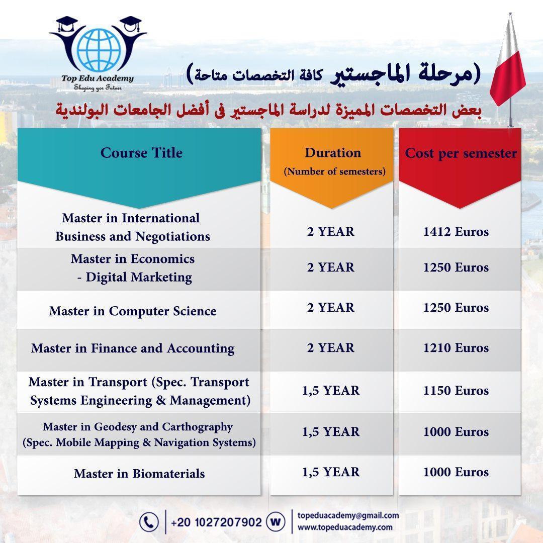 لكافة الخريجين وراغبي التميز وطلاب السنة النهائية في المرحلة الجامعية .. حقق حلمك بدراسة الماجستير في بولندا  جميع التخصصات متاحة والدراسة باللغة الإنجليزية بمصروفات مناسبة تبدء من 1900 يورو ..