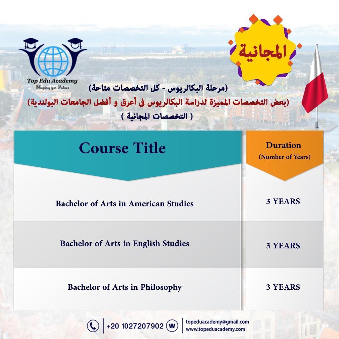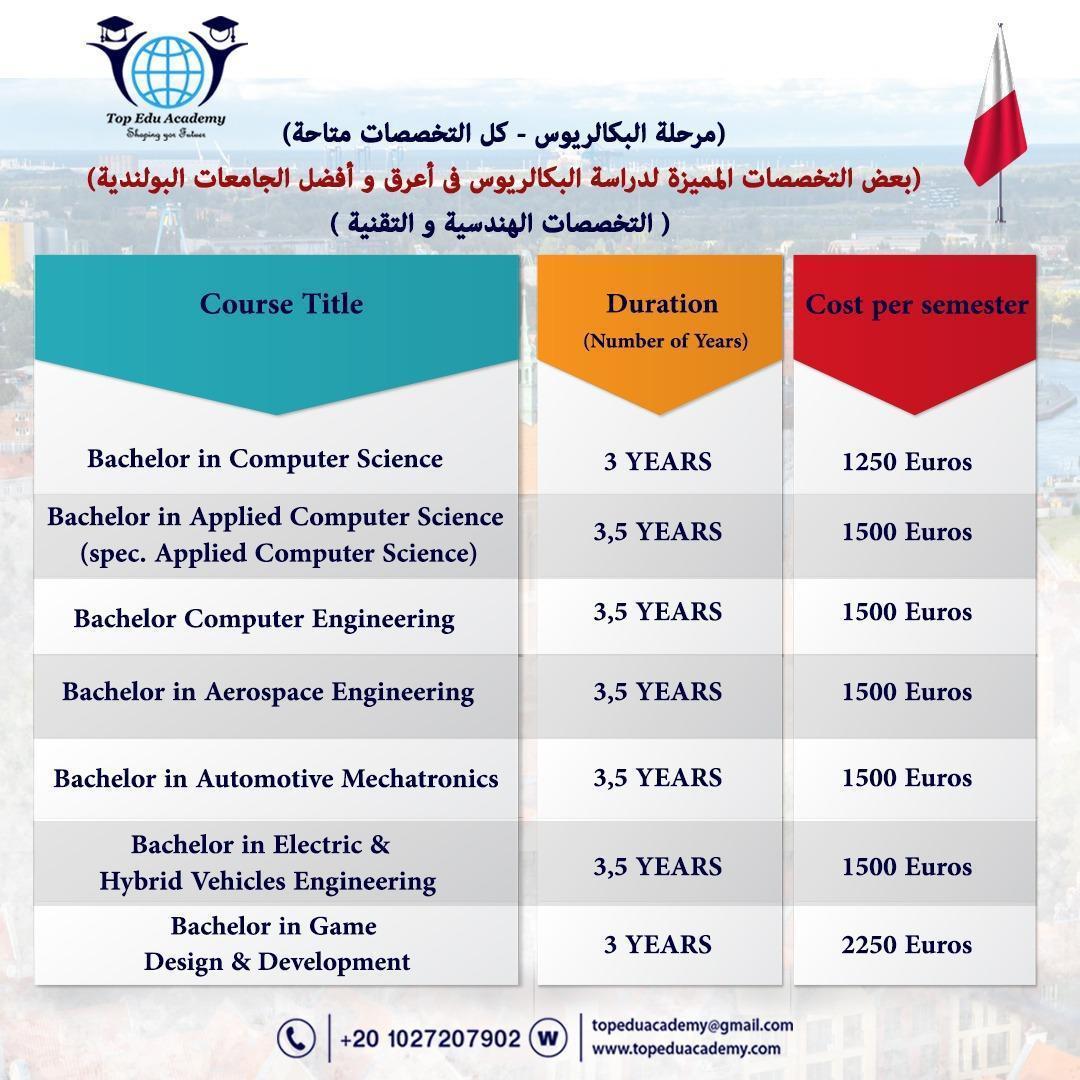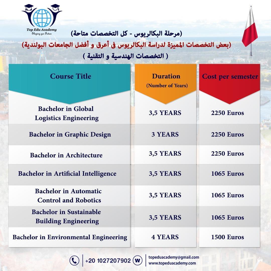 فقط ب 1250 يورو .. تقدر تحقق حلمك وتدرس في الإتحاد الأوروبي ?? في أفضل جامعات بولندا ??.. جميع التخصصات متاحة والدراسة باللغة الإنجليزية بمصروفات مناسبة سافر ادرس تخصصك المفضل مباشرةً في أفضل جامعات أوروبا وبدون سنة تحضيرية في بولندا ?? أحد أهم دول الإتحاد الأوروبي.